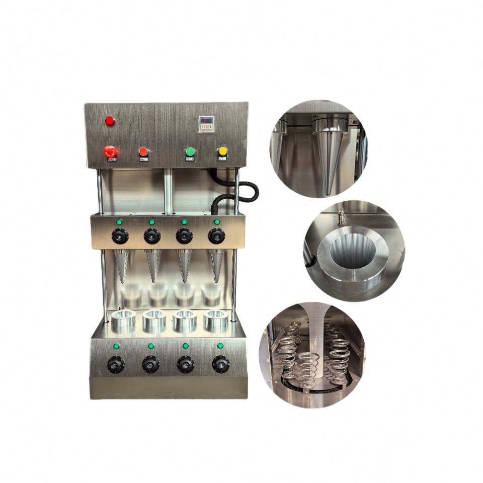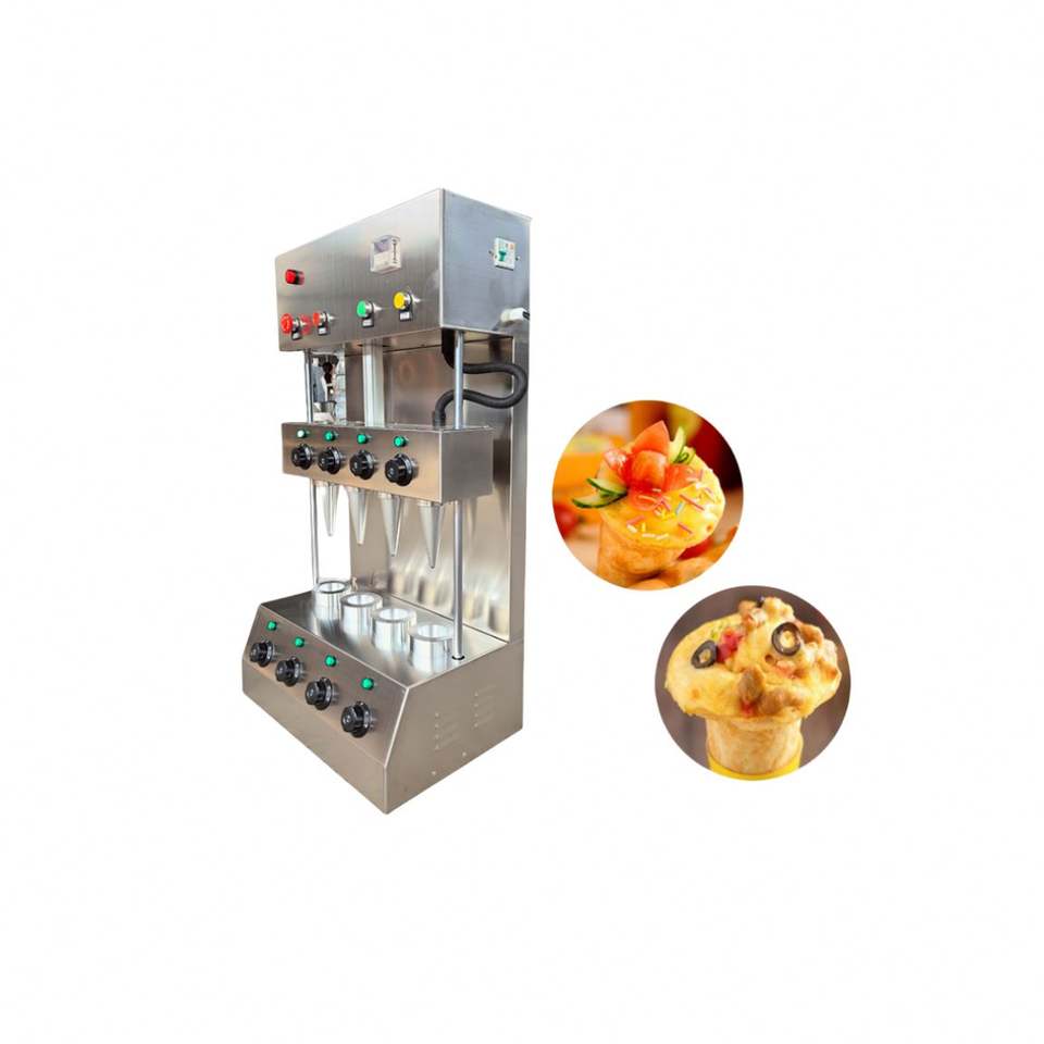 Machine automatique à 4 moules pour la fabrication de cornets de pizza croustillants, de cornets de glace, de gaufrettes, de coupes à sucre, de rouleaux d'œufs et de cornets de gaufres