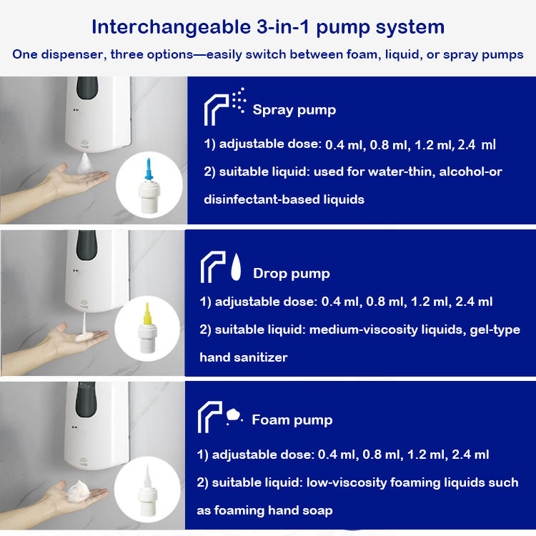 Distributeur de savon désinfectant pour les mains à dose réglable automatique 0,4 0,8 1,2 2,4 ml, capteur, écologique, usage hospitalier, mural