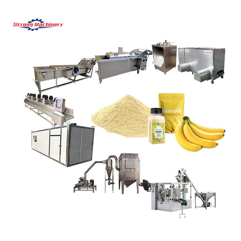 Ligne automatique de traitement de poudre de banane Eplucheur de plantain Trancheuse Machines à farine de banane Machine de fabrication de poudre de banane