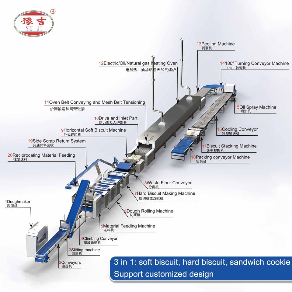Ligne de production automatique de biscuits, machine de formage de biscuits durs, four de cuisson et équipement de refroidissement
