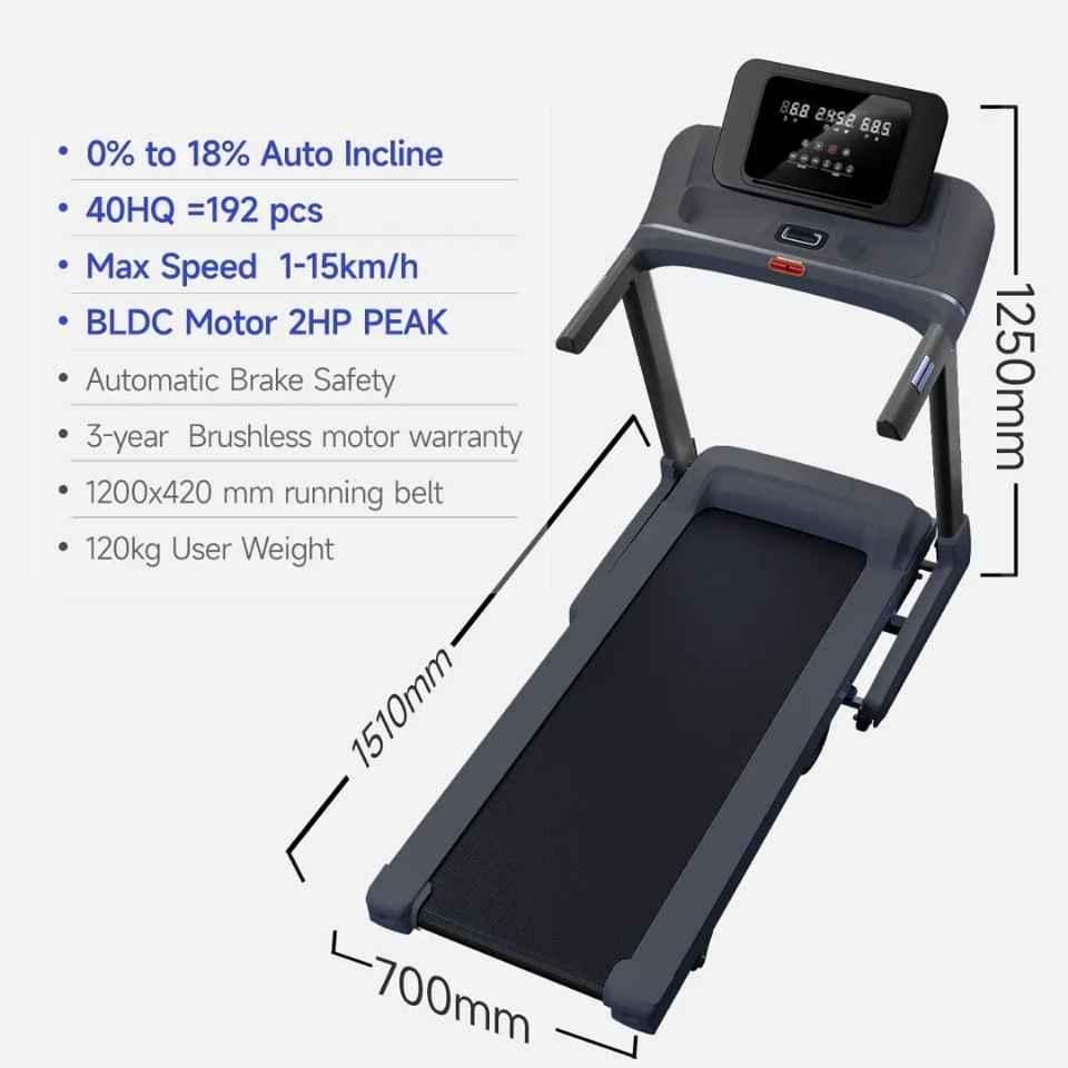 Tapis roulant avec freinage automatique et affichage LED de sécurité | Tapis de course électrique pliable à inclinaison automatique 0%18% Vitesse 1-15m/h Garantie 3 ans