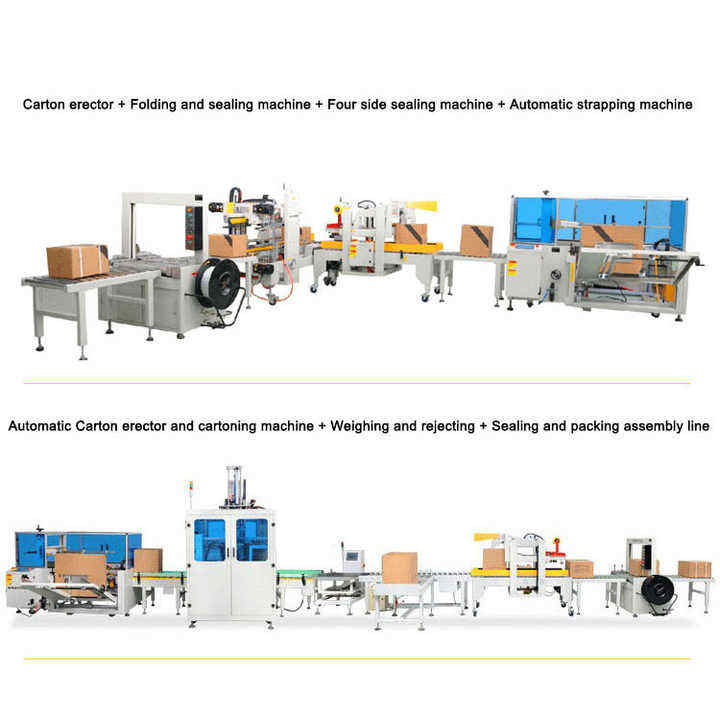 Érecteur de cartons automatique, Scelleuse de fond de carton, Ligne d'emballage