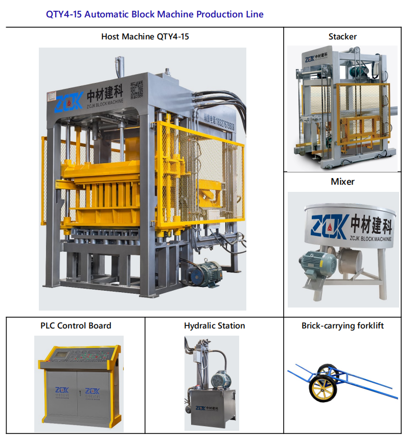 Machine automatique de fabrication de pavés/ briques creuses/ solides avec système de moules à changement facile ZCJK QTY4-15 Ligne de production de briques