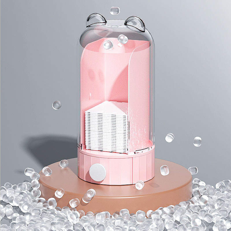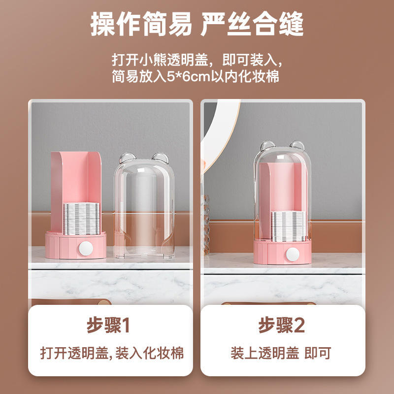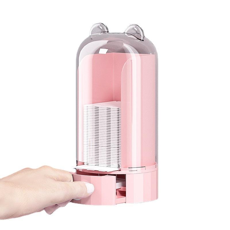 Boîte de rangement automatique pour tampons de coton avec tiroir, en plastique rose, anti-poussière, pour salle de bain ou chambre à coucher