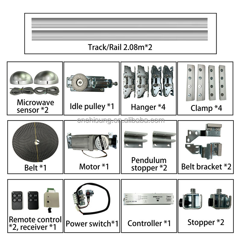 Poids du vantail de porte:Maximum 2*120kg