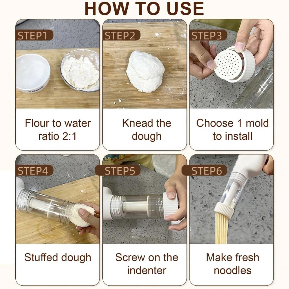 Machine à pâtes électrique automatique sans fil, manuelle, pour la découpe et le pressage de la pâte à spaghetti, avec 6 moules