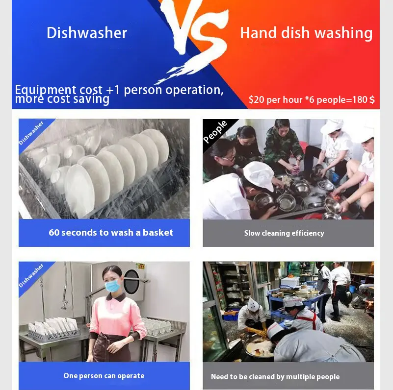 Lave-vaisselle commercial électrique automatique Lave-vaisselle à hotte en acier inoxydable pour hôtel restaurant