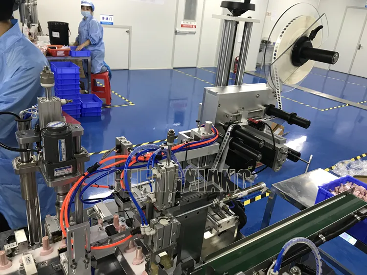 Machine automatique de remplissage de vernis à ongles électrique pour gel dans des flacons en verre avec système d'insertion et de bouchage de pinceaux de haute précision