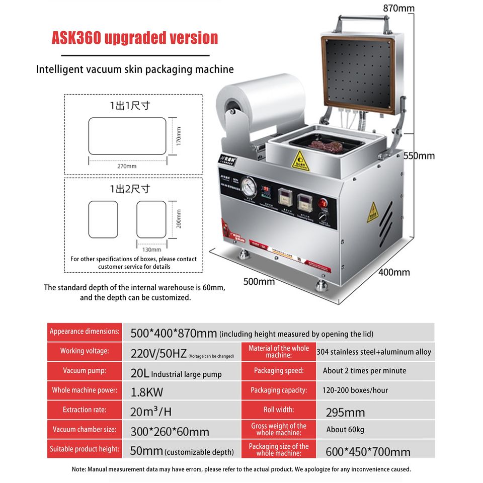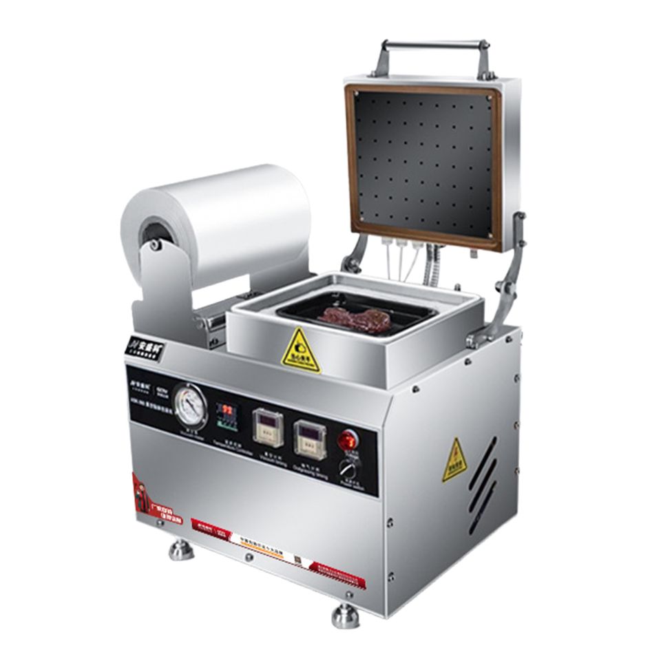 Machine d'emballage sous vide électrique automatique pour aliments cuits, sandwichs, saucisses, steaks - Emballage en boîte et en feuille d'aluminium
