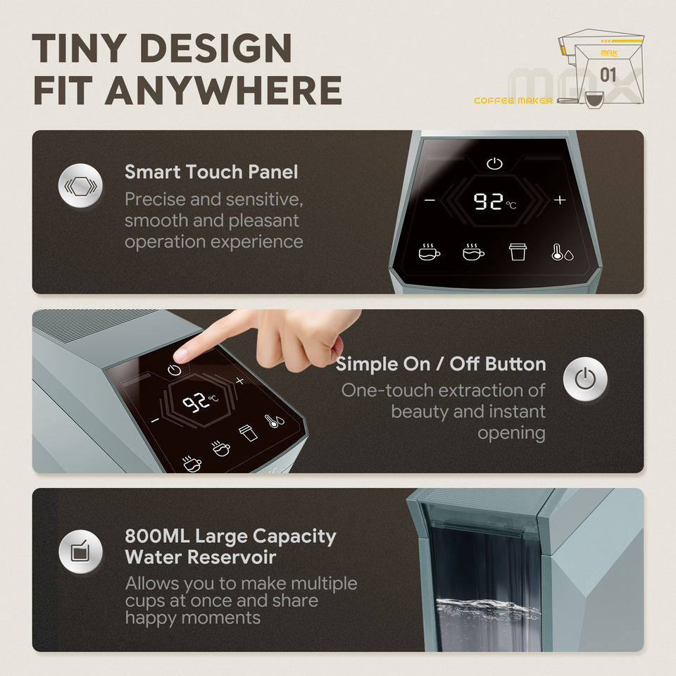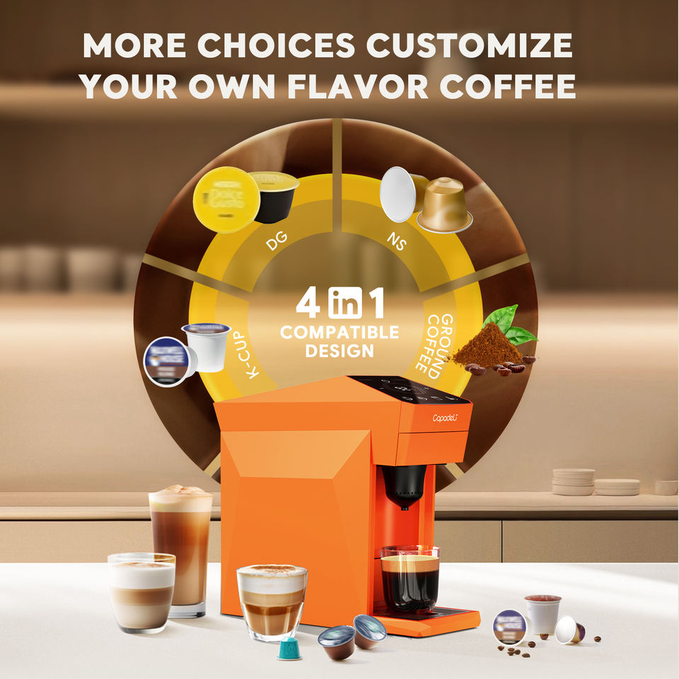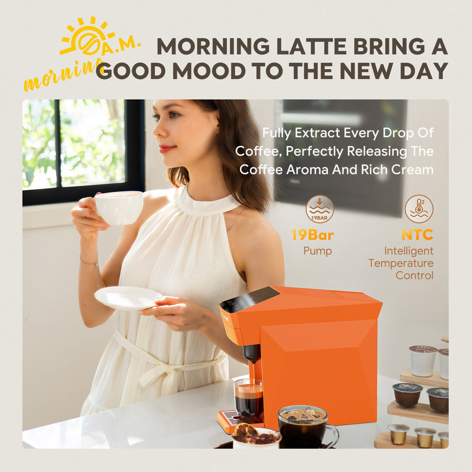 Machine à café expresso automatique, pompe 19 bars, chauffage rapide NTC, 4 en 1, capsules, réservoir de 800 ml