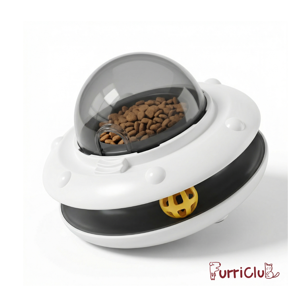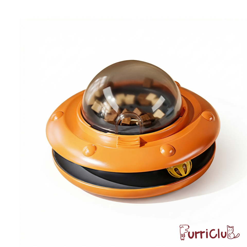 Distributeur automatique de nourriture pour chien et chat, jouet pour l'entraînement IQ et le soulagement de l'ennui, avec design UFO et boule à clochette