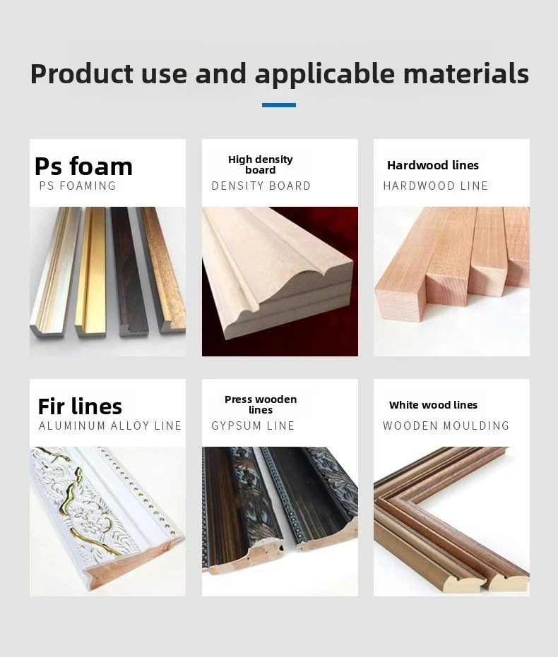 Utilisation:Convient pour le bois dur, le MDF, le gypse, les moulures en mousse PS, etc.