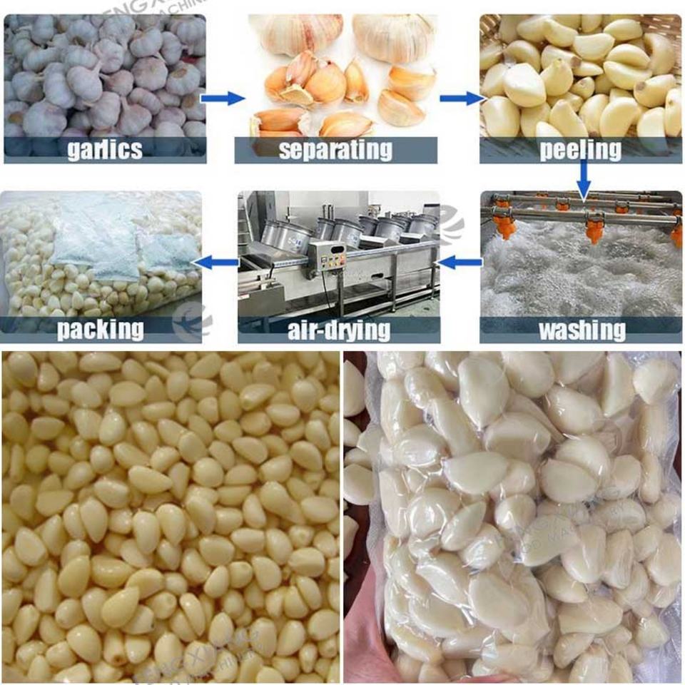 Ligne de production automatique d'ail : machine de séparation, d'épluchage, de lavage, de séchage à l'air et d'emballage de l'ail en Indonésie