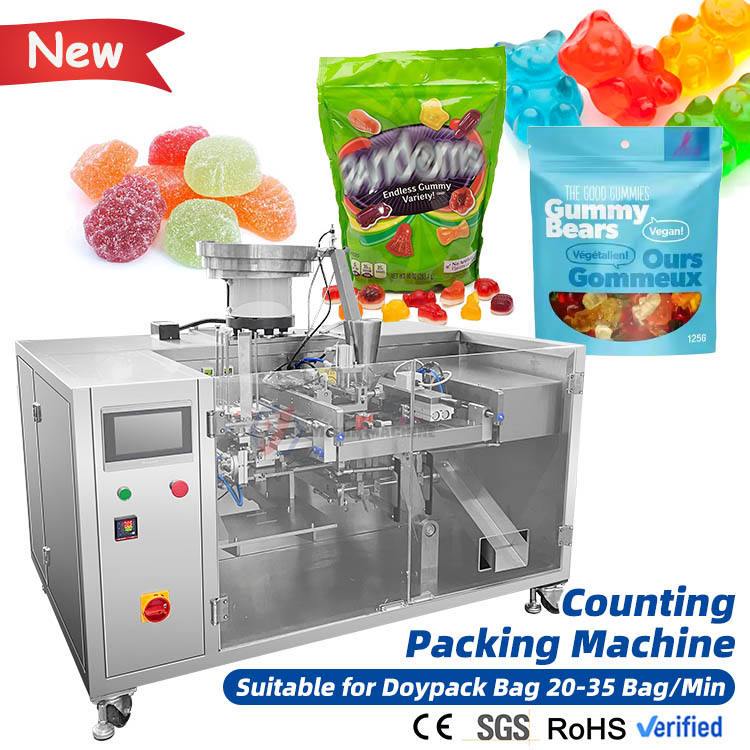 Machine d'emballage automatique de sachets préformés pour bonbons gélifiés avec plaque vibrante, machine de comptage et d'emballage de bonbons mous