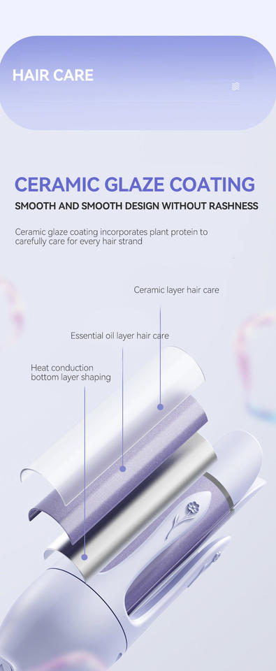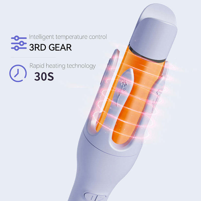 Fer à boucler automatique rotatif avec 3 températures, rotation bidirectionnelle, chauffe rapide, anti-brûlure, baguette à boucler rotative