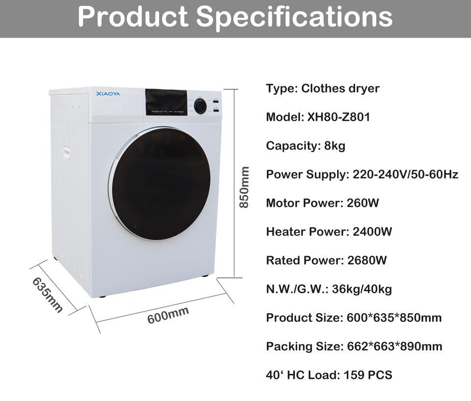 Sèche-linge automatique à ventilation, en acier inoxydable, électrique, pour la maison et les camping-cars