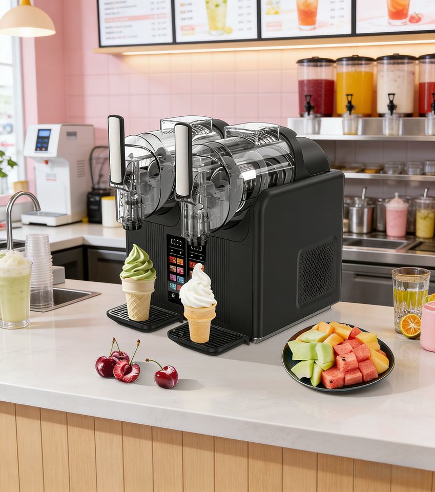 Machine à slush industrielle automatique à 2 réservoirs en acier inoxydable pour la fabrication de slush glacé à domicile ou en entreprise