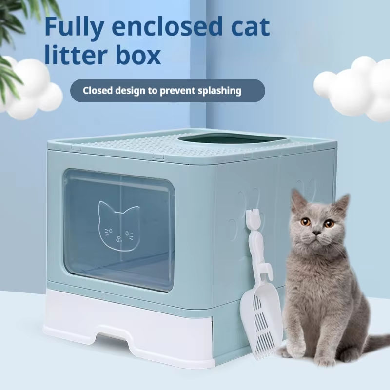 Bac à litière automatique pour chat de grande taille, entièrement fermé, style tiroir, anti-éclaboussures, en plastique PP, facile à nettoyer, grande capacité, pour animaux de compagnie