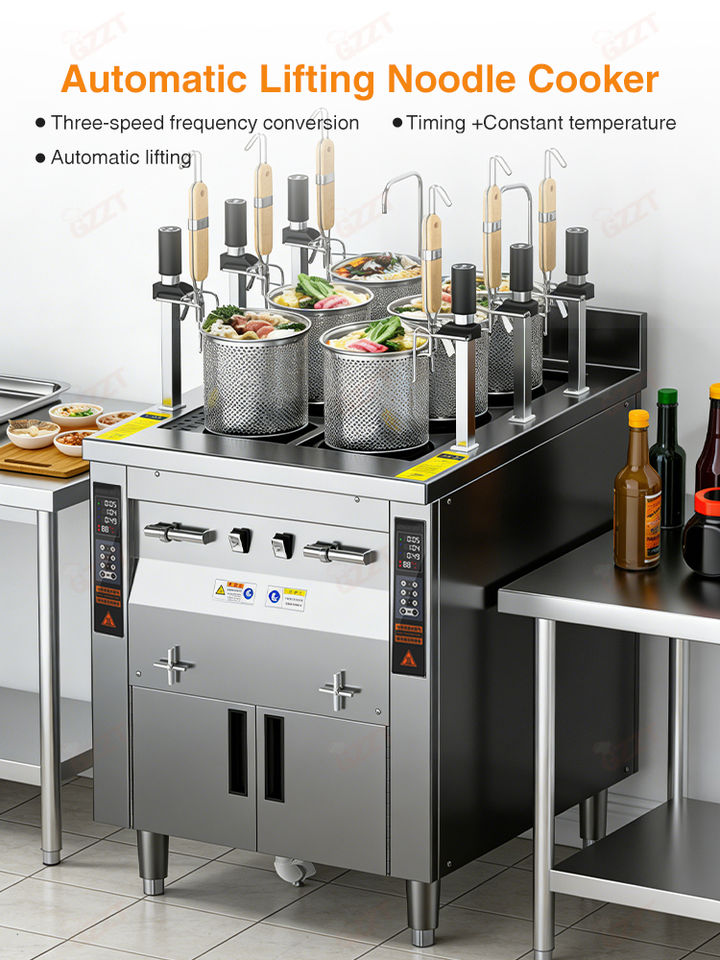 Cuiseur à pâtes automatique à haute puissance en acier inoxydable à 6 paniers pour restaurant commercial, hôtel, cuisine