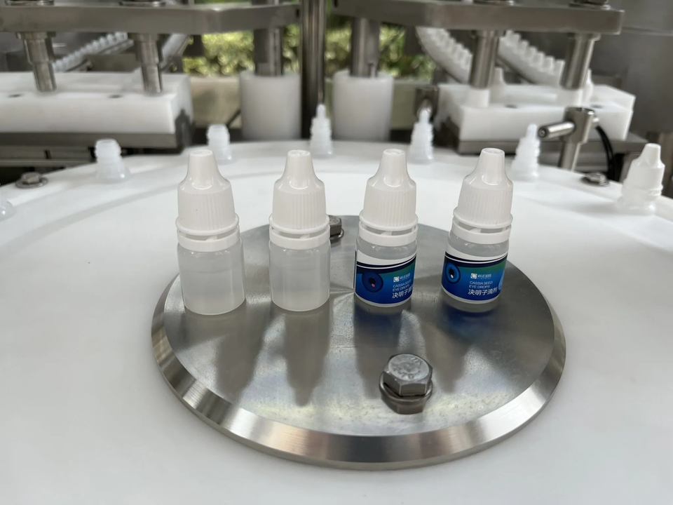 Machine automatique de remplissage et de bouchage de liquides pour gouttes oculaires linéaires avec convoyeur