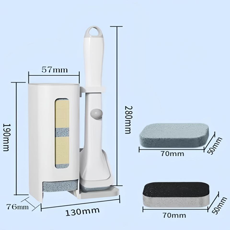 Ensemble de brosses de nettoyage de cuisine à ajout automatique de liquide avec tête de tampon à récurer/émeri jetable remplaçable à long manche en plastique
