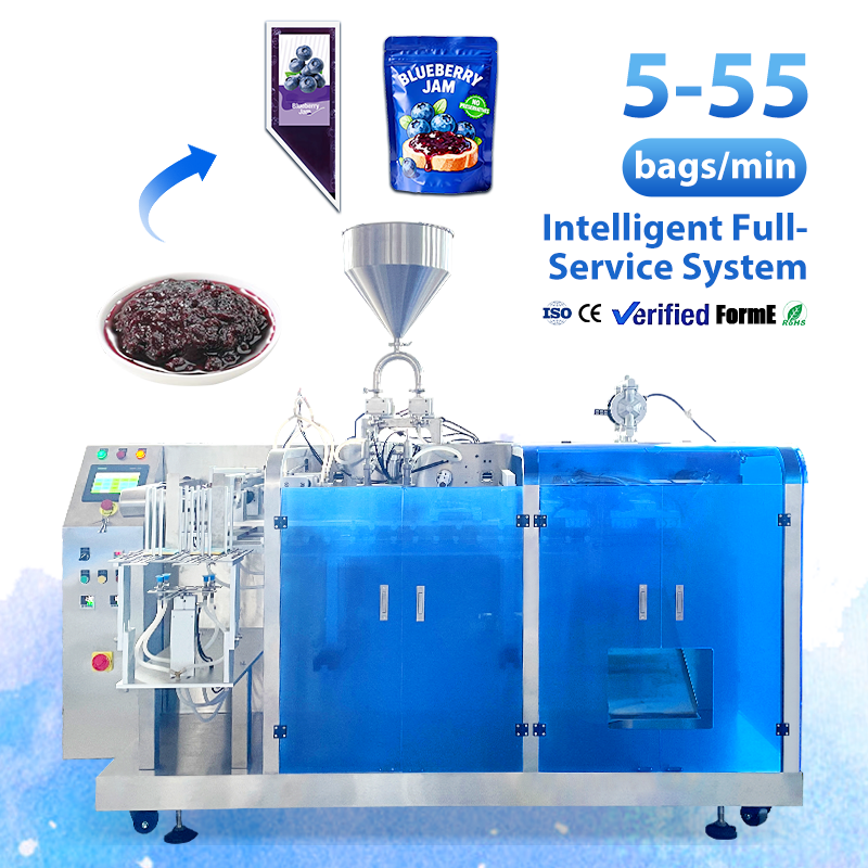 Remplisseuse automatique de liquides et de pâtes | Machine Doypack 100ml 500ml pour jus, sauce, confiture, café, miel, emballage et scellage en sachet