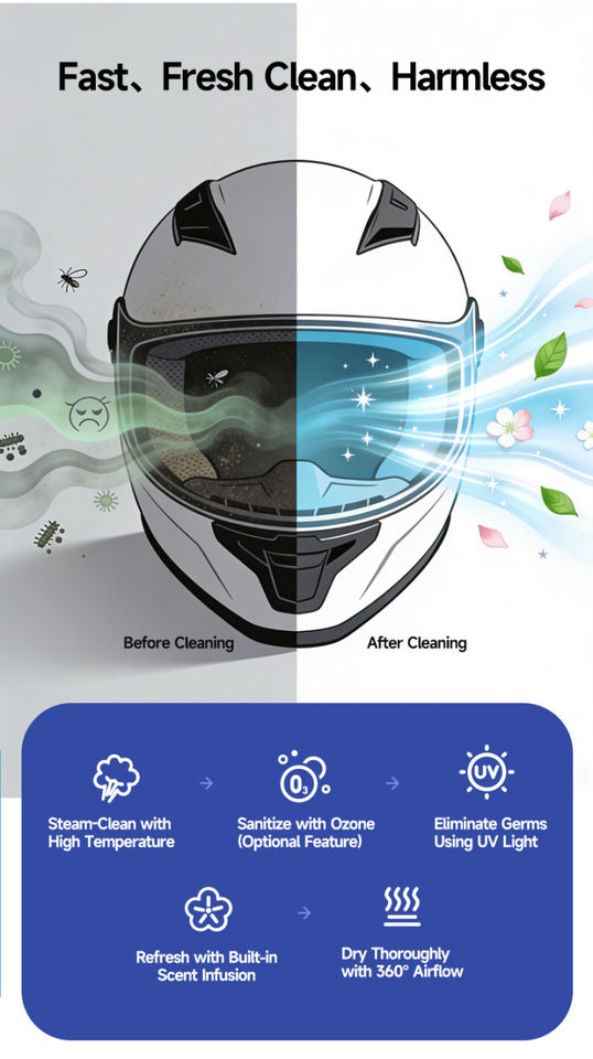 Cleaning Process:Thermal + Vapor + Ozone + UVC + Aromatherapy + Hot air drying