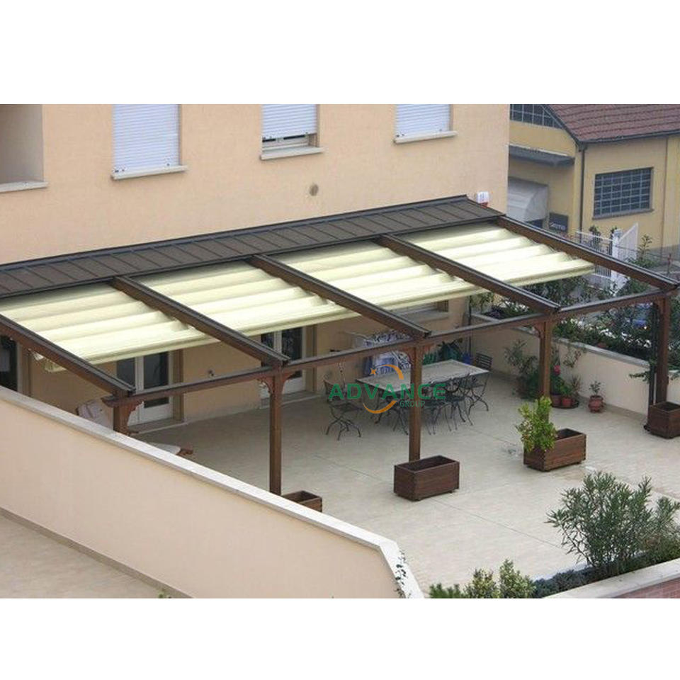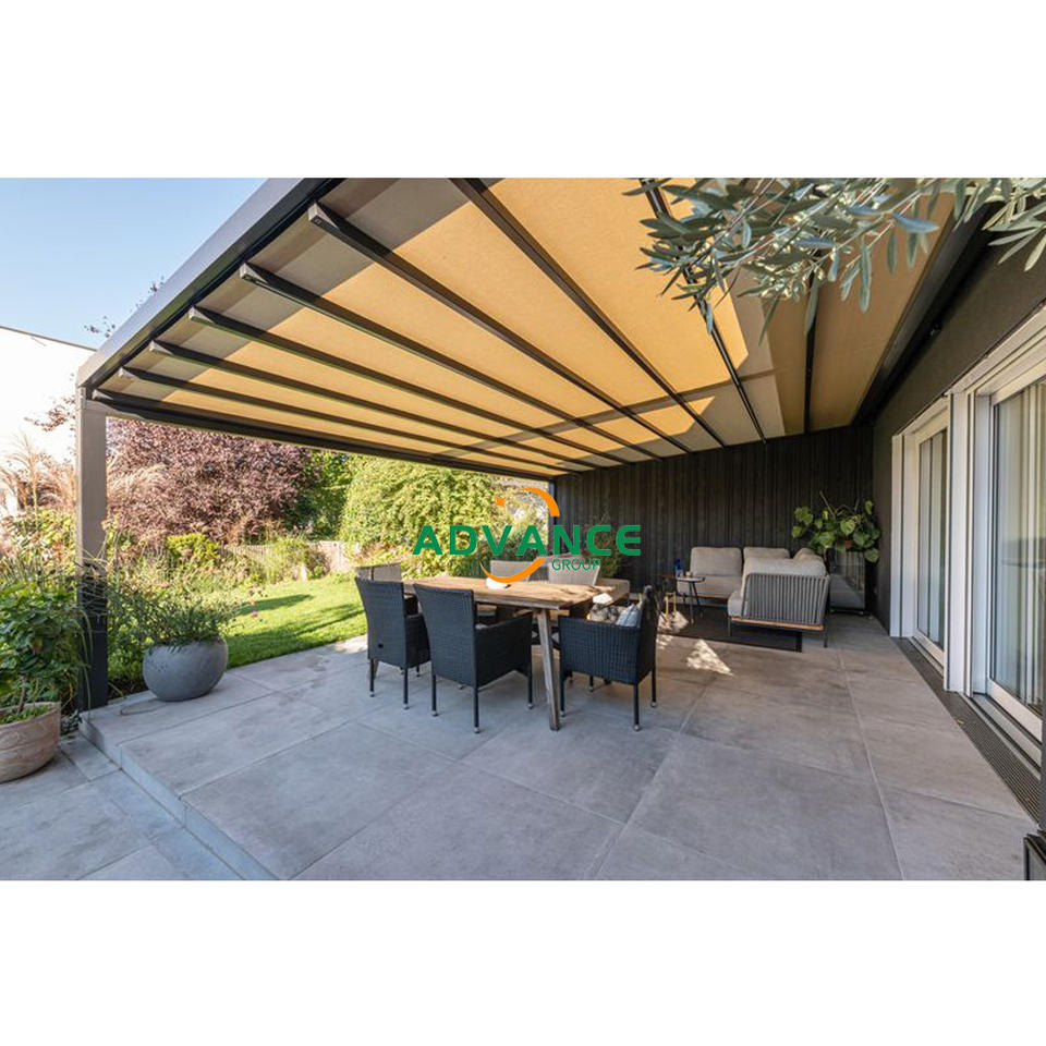 Auvent de toit rétractable motorisé automatique, pliable, coulissant, en PVC avec rideaux latéraux et lumières