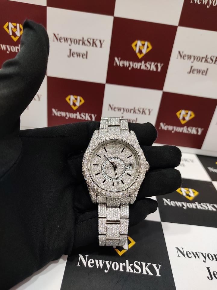 Mouvement automatique Montre Moissanite pour homme 41mm All Iced Mechanical Bracelet en acier inoxydable Cadran en verre Window Pass Diamond Tester