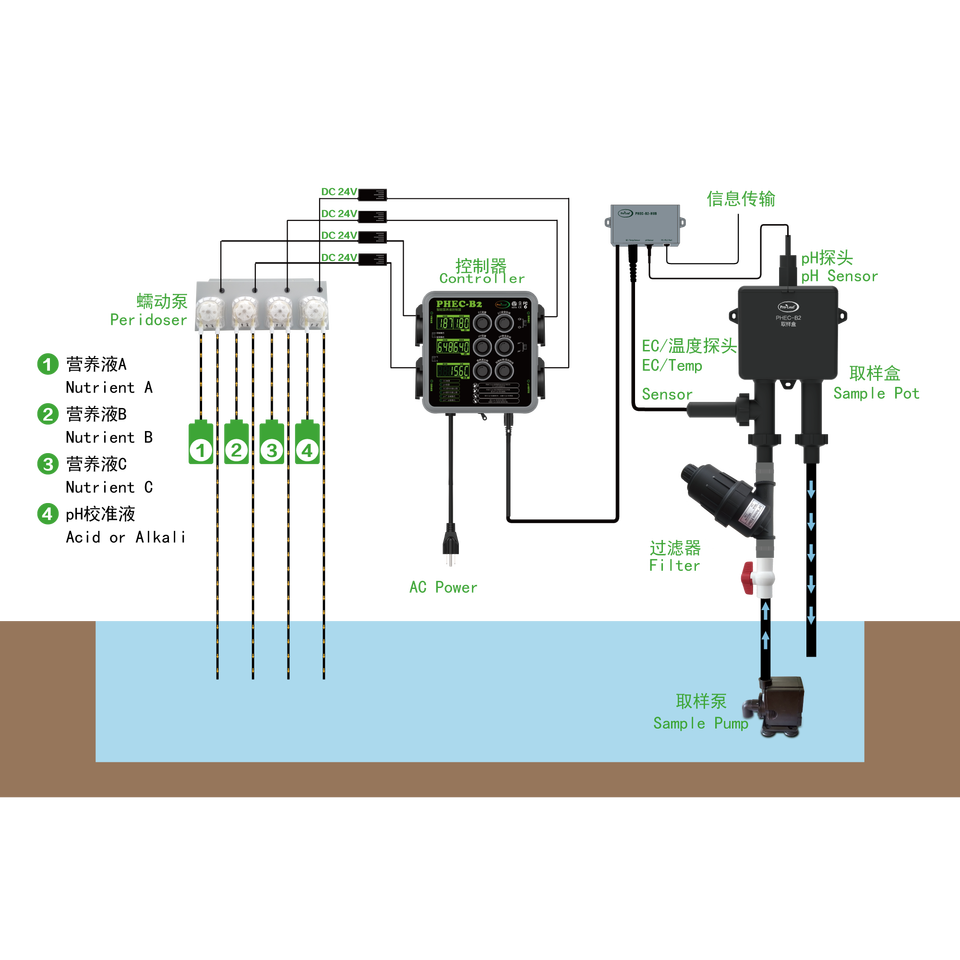 Doseur automatique de nutriments PHEC-B2 PH et nutriments (TDS) Hydroponique numérique Inondation et drainage