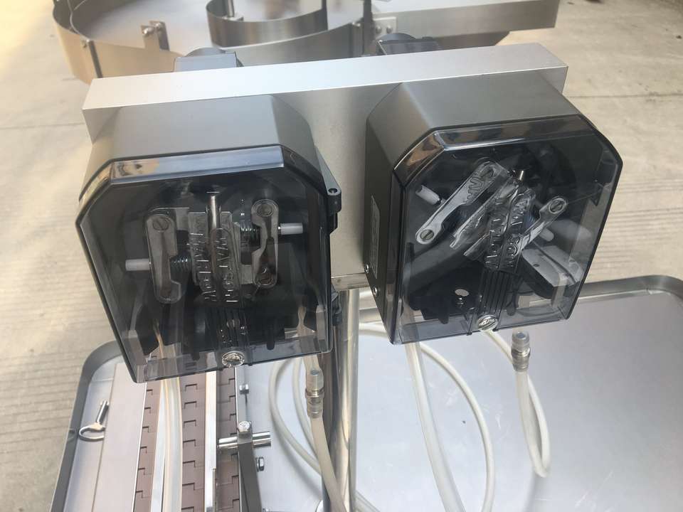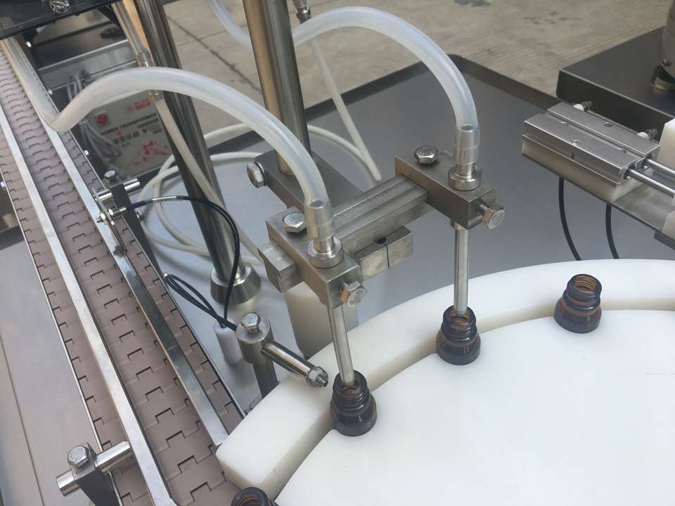 Machine de remplissage automatique PLC haute précision pour flacons compte-gouttes et canettes en verre/plastique à 2 buses, 10ml, 30ml, 50ml, pour sérum/huile essentielle