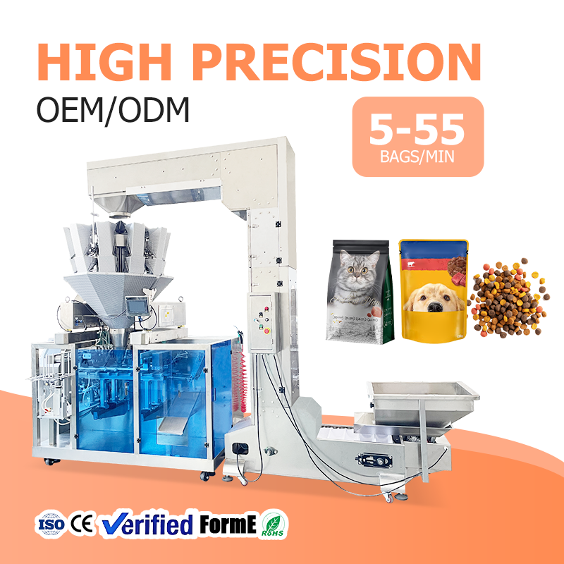 Machine d'emballage automatique pour aliments secs pour animaux de compagnie (chats, chiens), granulés et snacks, équipement de remplissage et de scellage de sachets Doypack préformés à fermeture éclair