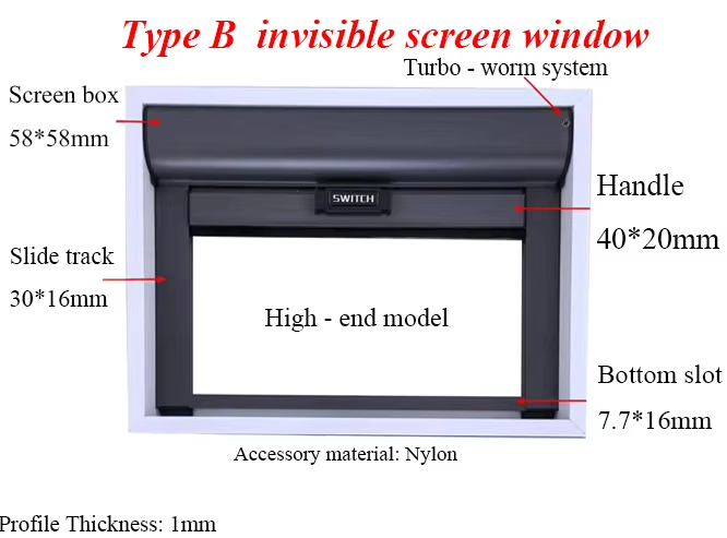 Nom du produit:Fenêtre à moustiquaire invisible à enroulement