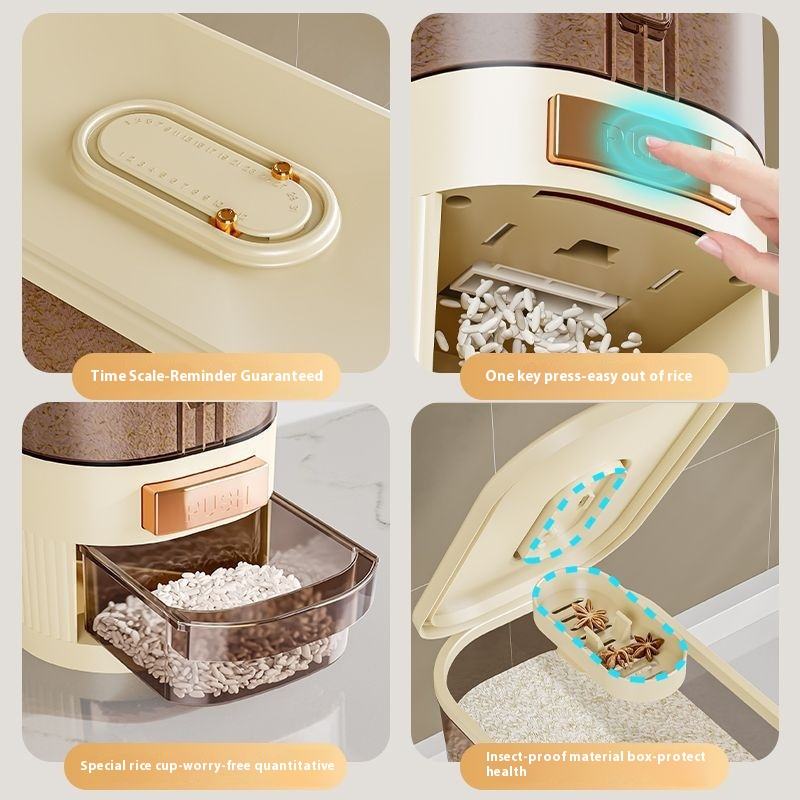 Distributeur automatique de riz, poubelle de cuisine, anti-humidité, anti-insectes, récipient de stockage de céréales scellé, sans BPA, boîte alimentaire ménagère OEM