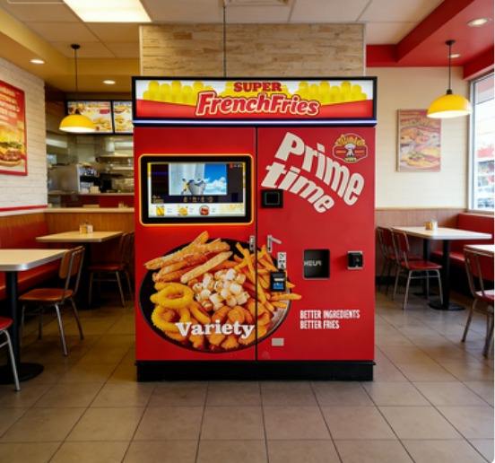 Distributeur automatique de burgers et de frites