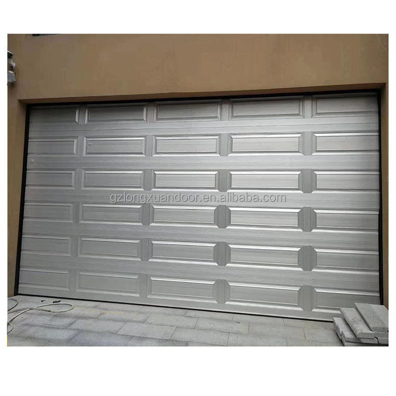 Porte de garage sectionnelle automatique antivol en acier et alliage d'aluminium avec surface finie pour entrée de villa