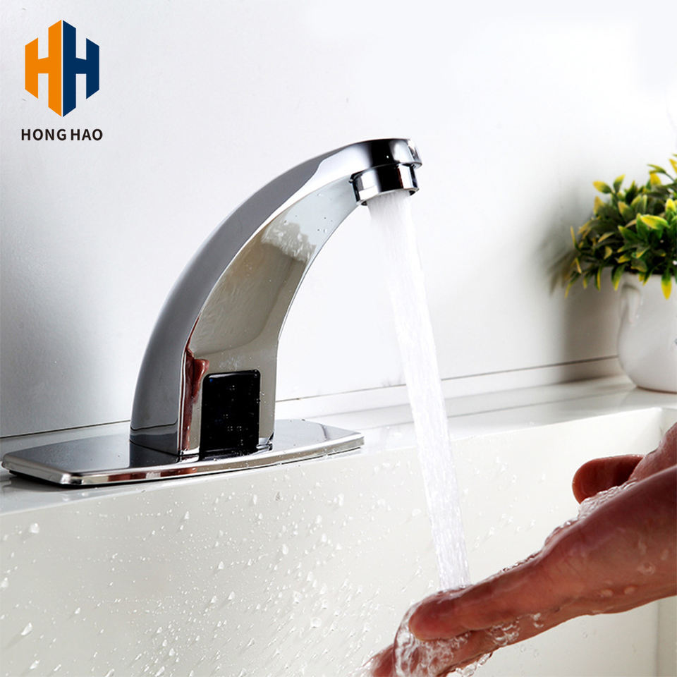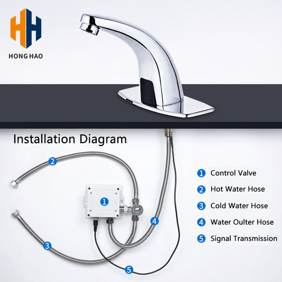 Robinet automatique à capteur infrarouge en alliage de zinc, eau froide, 3 voies, à poser sur comptoir, finition chromée, débit 16-28L/min