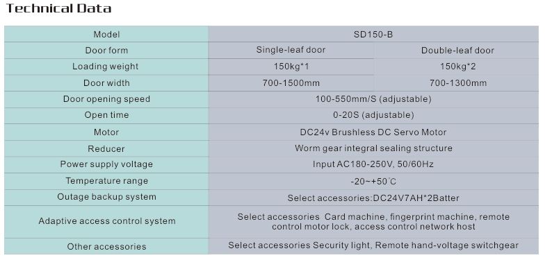 Vitesse d'ouverture de la porte:100-550 mm/S (réglable)