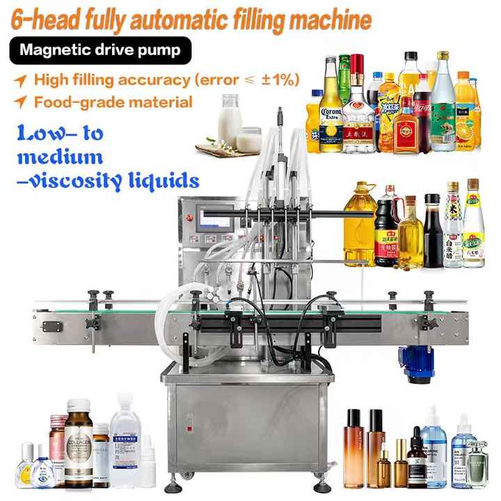 Remplisseur de liquide à pompe magnétique automatique à six têtes Machine de remplissage de bouteilles en verre à petite échelle de 1 litre avec convoyeur