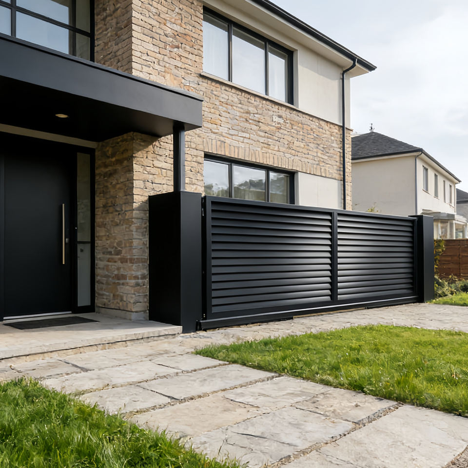 Portail Coulissant Automatique Moderne pour Entrée de Villa, en Aluminium, Sécurité de Voie d'Accès, Design de Luxe, Sans Rail