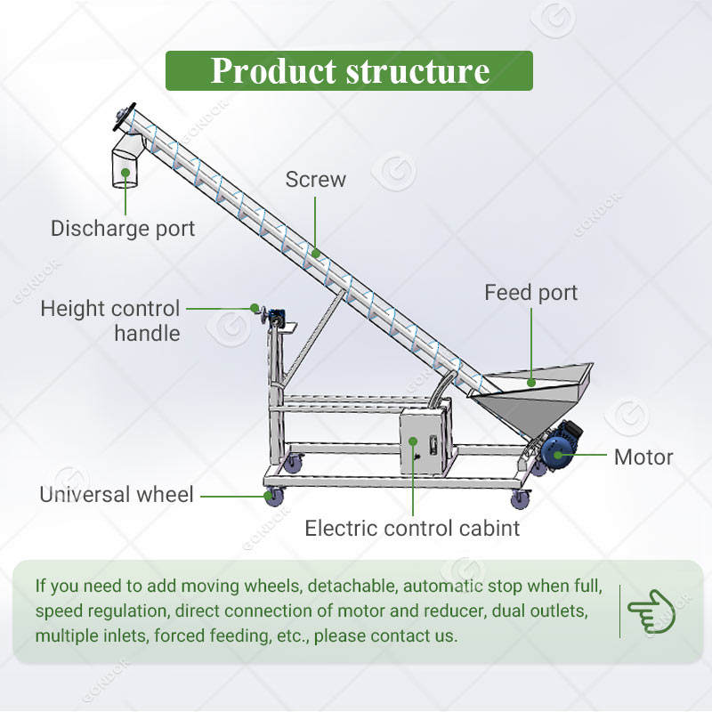 Convoyeur à vis flexible automatique en acier pour machine, alimentateur à vis sans fin et tube en U parallèle incliné pour poudre