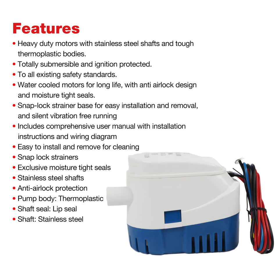 Pompe à eau de cale marine électrique submersible automatique 12V/24V DC à batterie