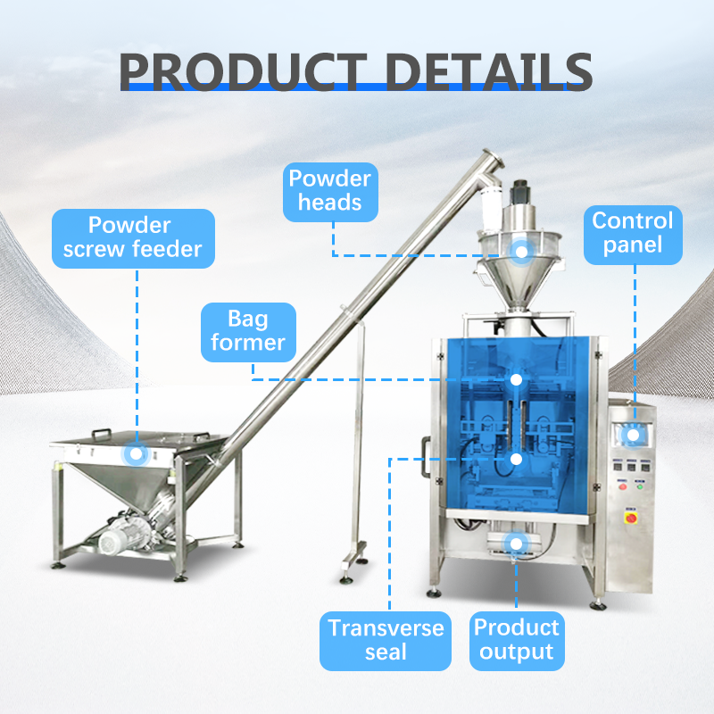 Machine d'emballage automatique VFFS pour poudre de lessive – Remplisseuse à vis sans fin, précision de ±0,5 g, réglage automatique, certifiée CE et FDA