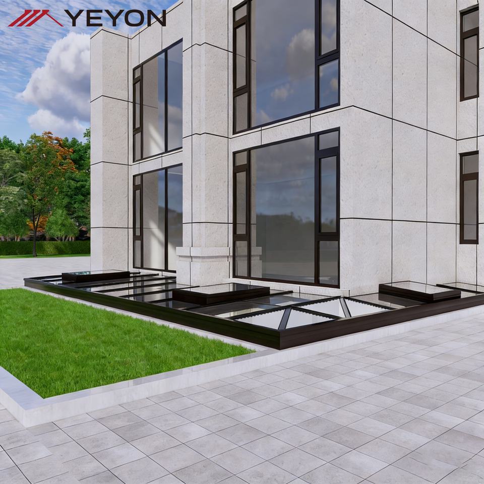 Puits de lumière vertical automatique insonorisé en verre avec cadre en alliage d'aluminium pour éclairage de sous-sol et espaces souterrains
