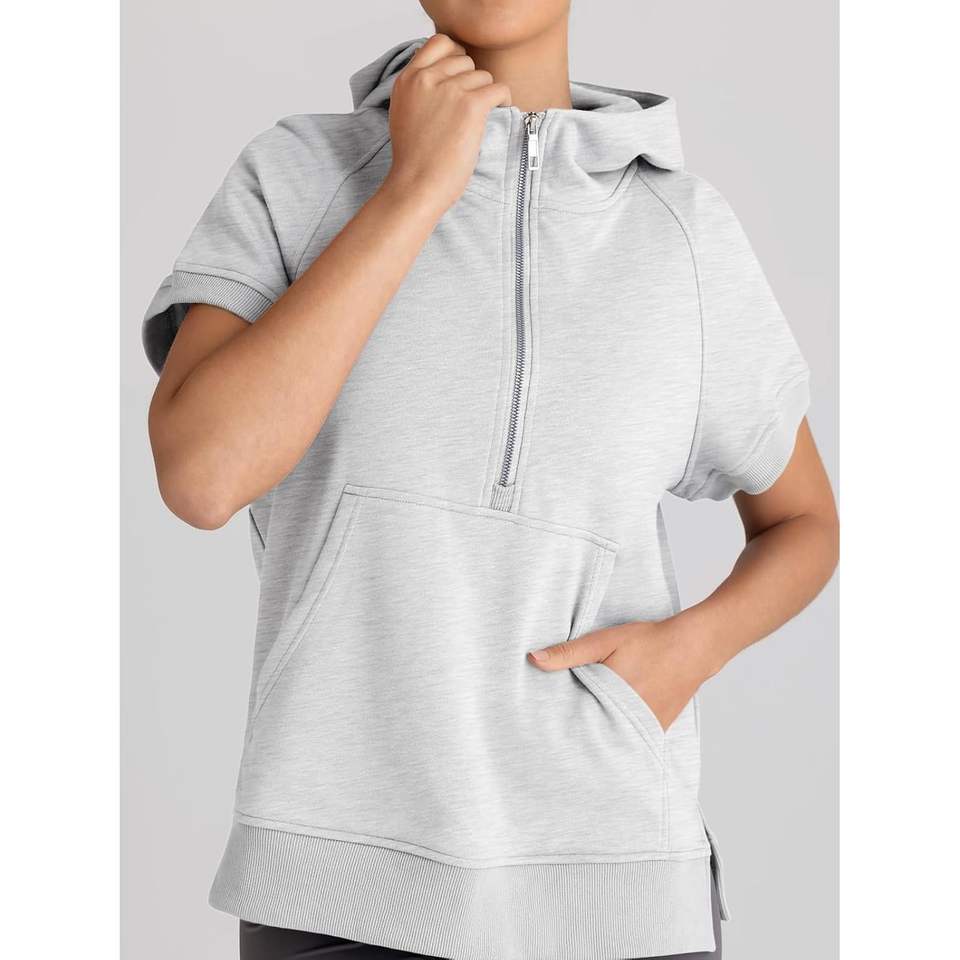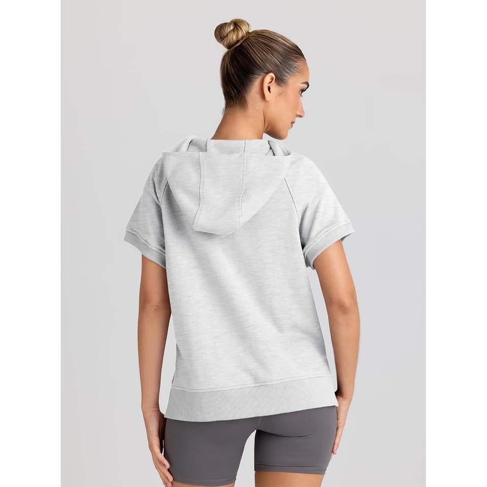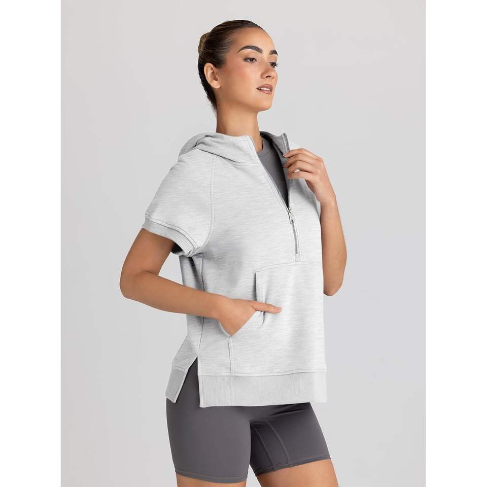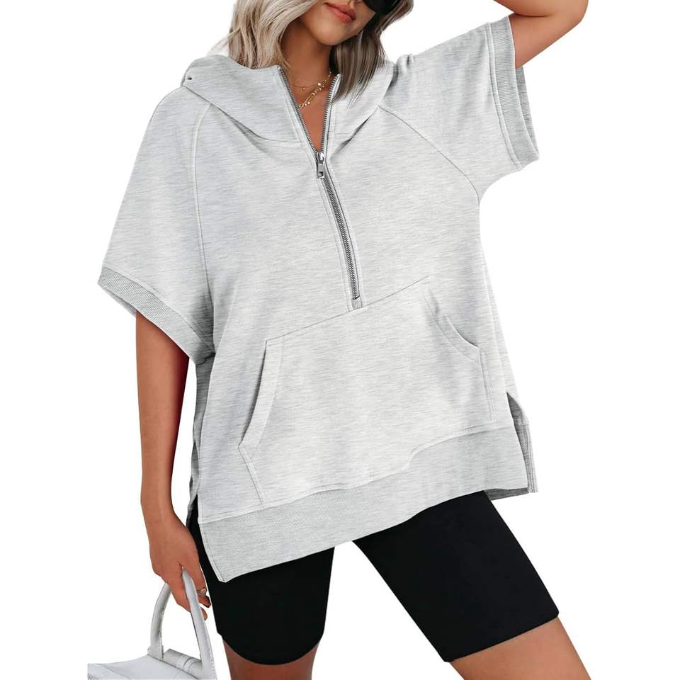 Automet 2025 automne mode femmes surdimensionné en soie à capuche à manches courtes demi fermeture éclair sweat coupe ample pull tenues