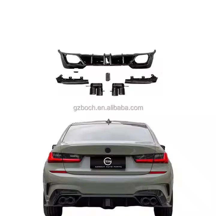 Diffuseur de pièces automobiles pour BMW série 3 G20 G28 mise à niveau course lèvre arrière noir embouts d'échappement LED diffuseur arrière pour 2020 +