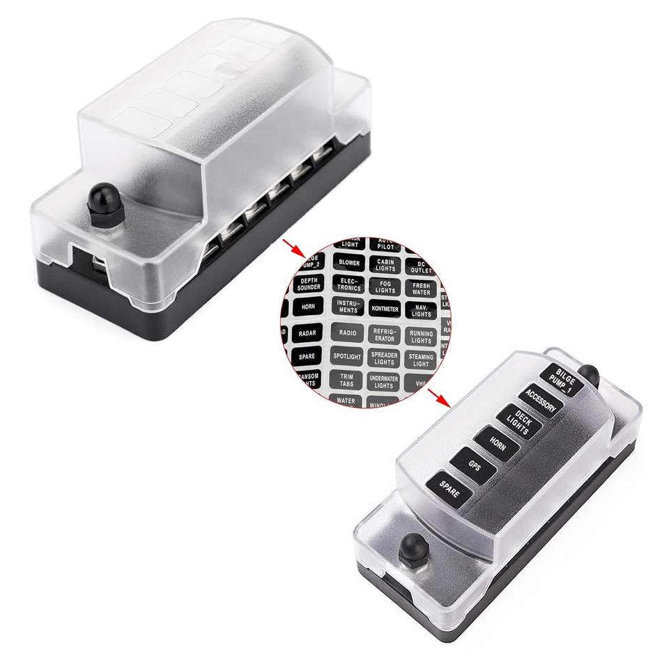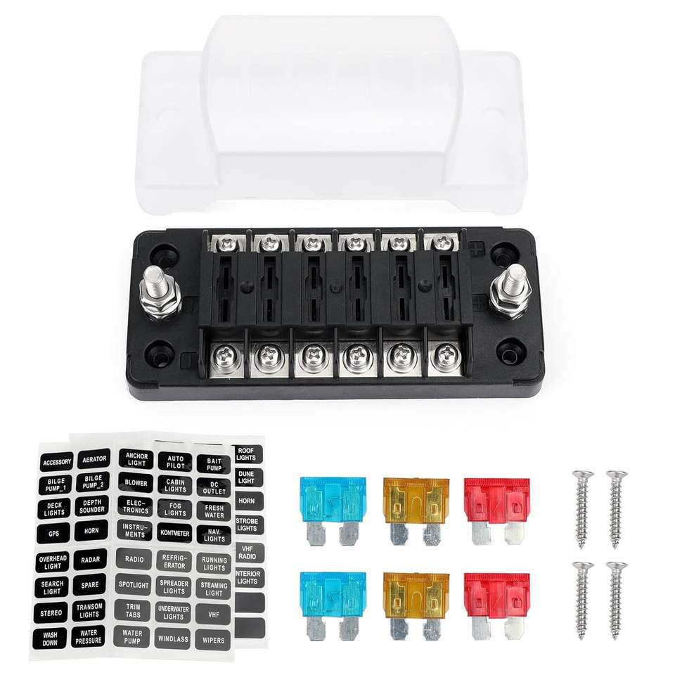 Boîtier de fusibles en plastique automobile 6 voies à circuits indépendants, bloc de fusibles à lame ST avec couvercle 12V à haute capacité de coupure