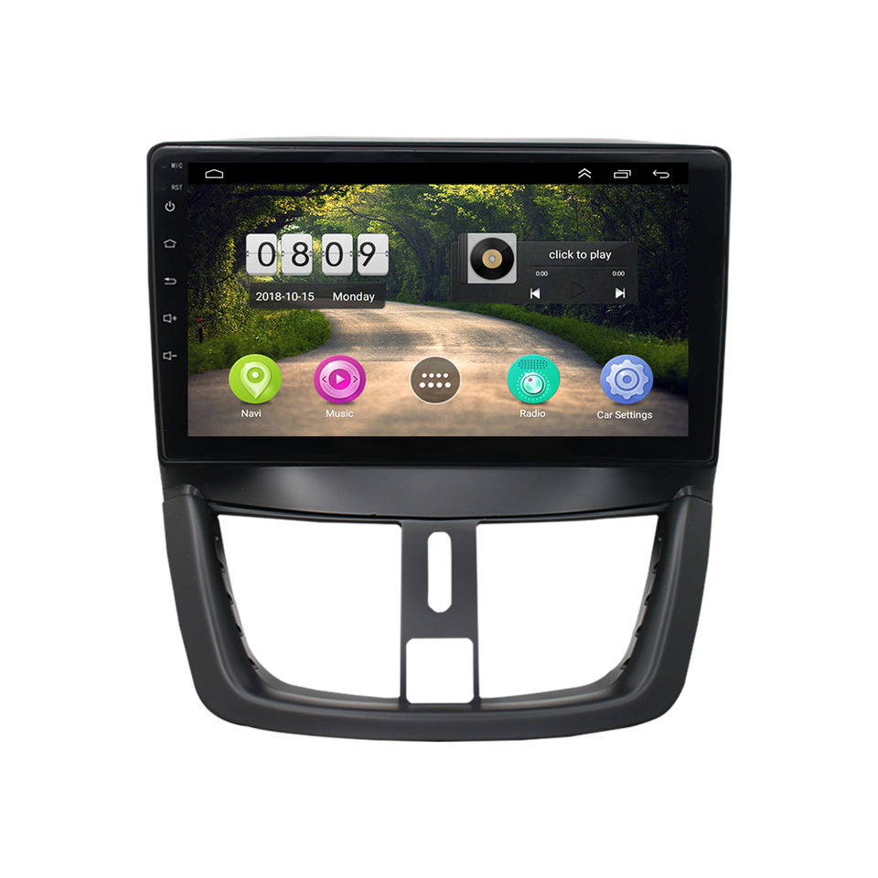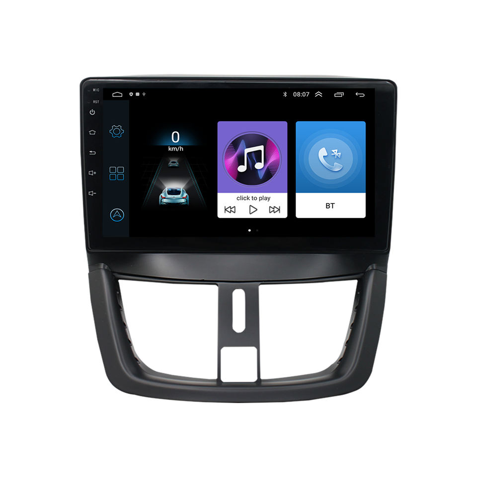 Autoradio android, audio stéréo, 2 din, usb, bt, carplay, cadre fascia, lecteur d'autoradio pour peugeot 207 2006-2015