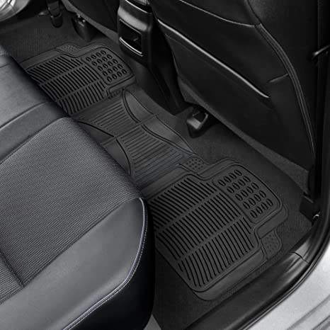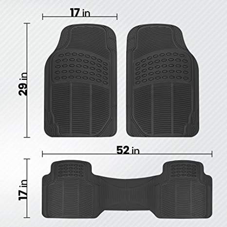 Autoway Tapis de sol de voiture universels OEM, ensemble de 3 pièces, carrés, imperméables, durables, antidérapants, noirs, épaisseur 10 mm