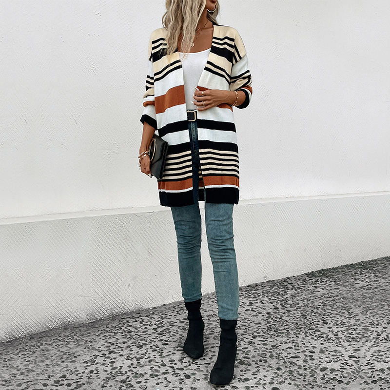 Autumn and Winter Women's Elegant Temperament Striped American Cardigan Vintage Coat Sweater Factory Wholesale 2023 New